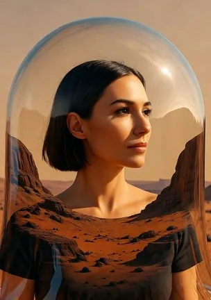 Эта статья посвящена исключительно тому, что Елена рассказала об атмосфере Марса; она утверждает, что она была бы пригодна для дыхания. Она описывает, как ей, на всякий случай, выдали что-то вроде прозрачного шлема, который плотно облегал плечи. Этот шлем, похожий на мыльный пузырь, появился из гаджета, который ей подарил Ea. Давайте послушаем, как она описывает свои первые моменты на Марсе.