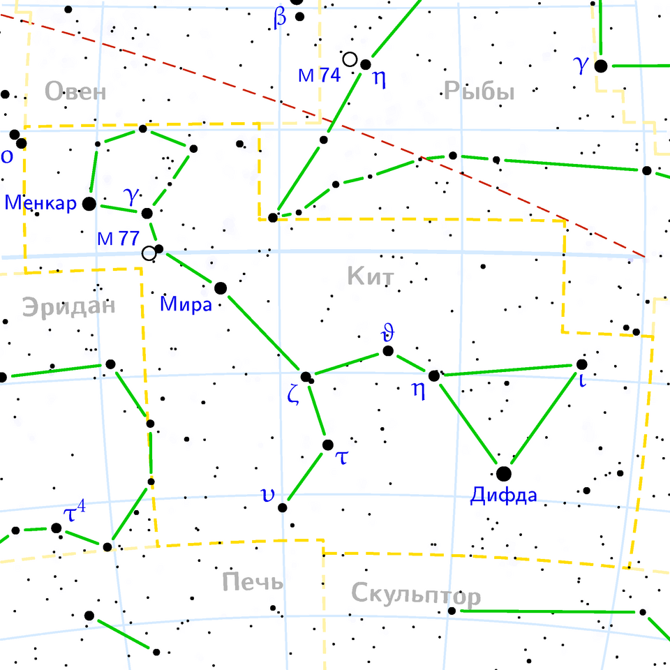 Тау-китианцы – у Высоцкого это “тау-китайцы”. Вот где они находятся: созвездие Кита и звезда τ (тау) Кита: